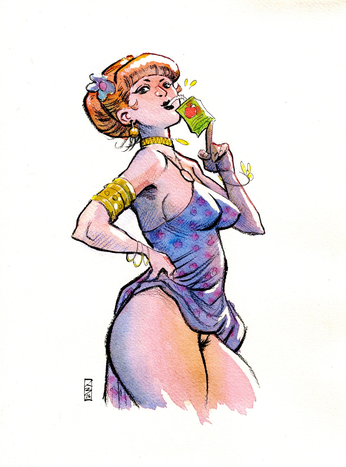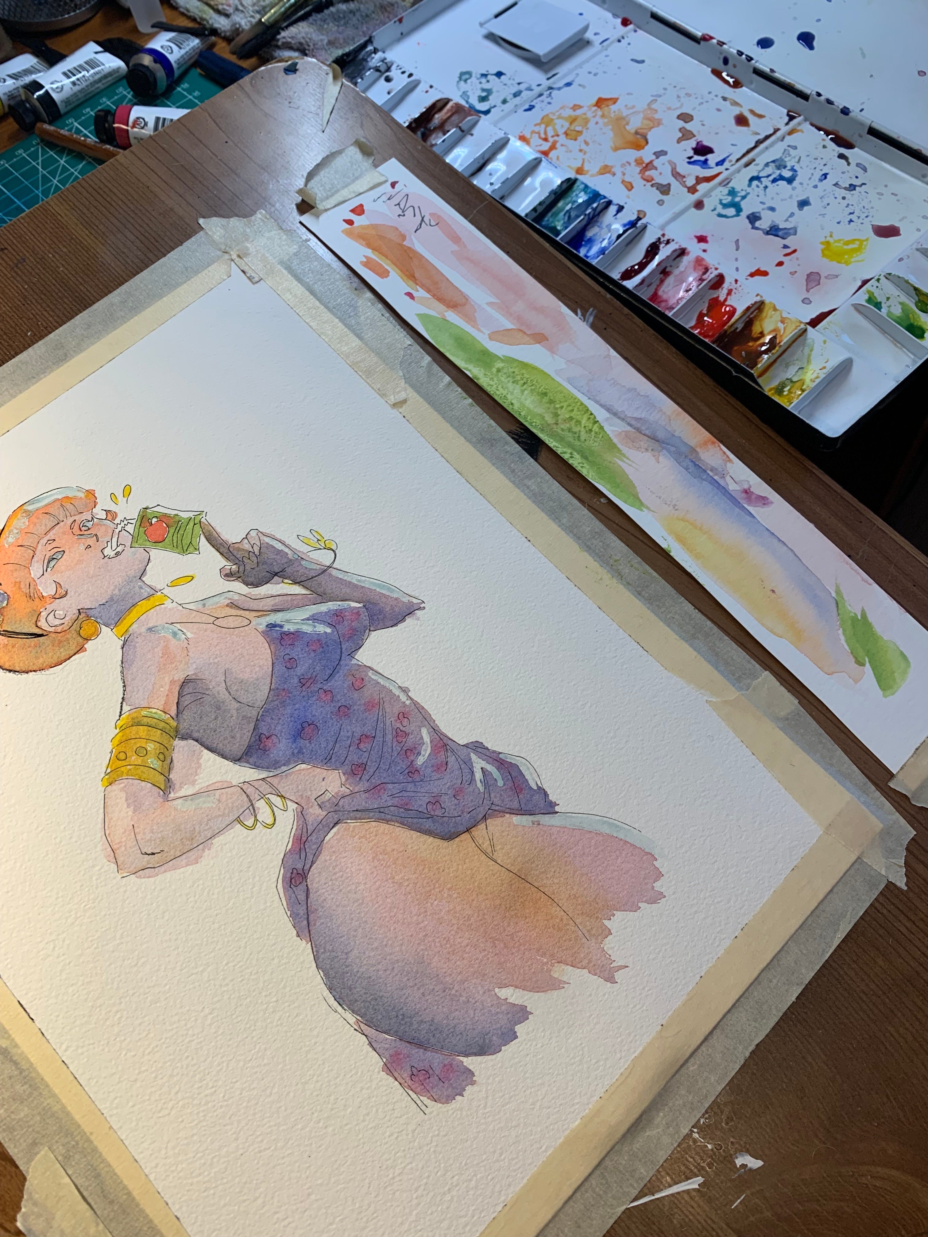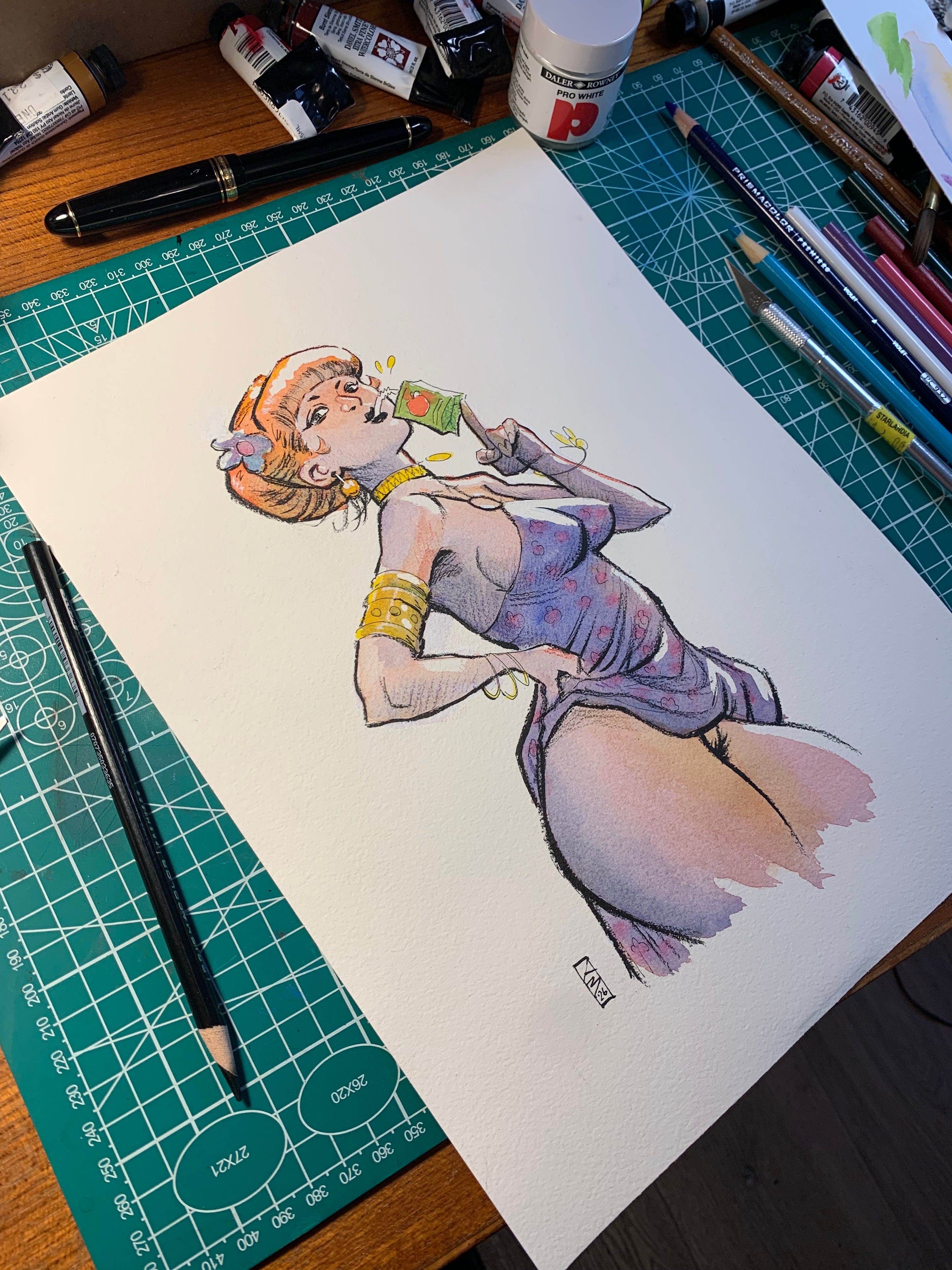 Juice! My personal challenge for the month was to try coloring a nice harmonious thing in watercolor. Itβs not my usual medium and I usually end up having to airbrush at the end to help bring the colors together. No airbrush this time. Worked out pretty all right.ππ